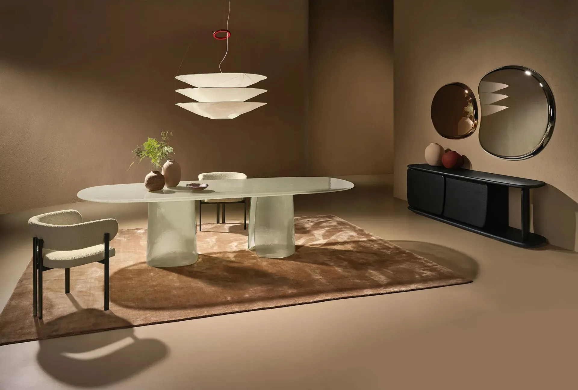Ideali per dare vita a degli abbinamenti unici con sedute e complementi design, i Tavoli fissi dell'azienda sono soluzioni tra le più esclusive in commercio, ideali per il soggiorno e la zona cucina. Il rinomato marchio Nature Design, specialista nella realizzazione di mobili in vetro, ha scelto per la sua serie una grande varietà di materiali, linee e cromie. Tavolo in vetro Cinnamon di Nature Design: realizzato in materiali durevoli è caratterizzato dalle linee decise del top e da un basamento elegante e sofisticato. Un modello come quello nella fotografia, in abbinamento alle giuste sedute, saprà arricchire l'atmosfera delle stanze domestiche dedicate in assoluto all'ospitalità.