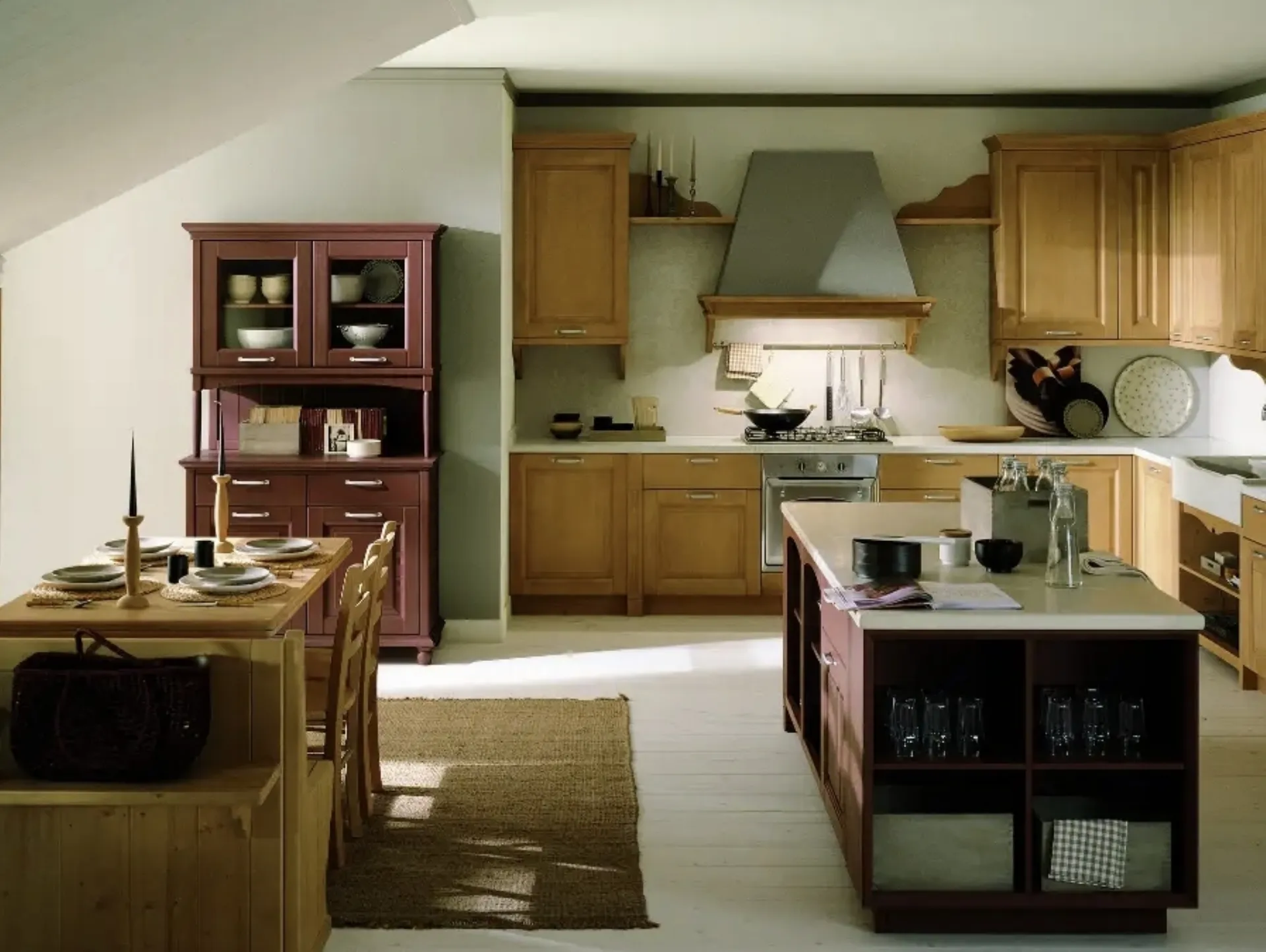 Le soluzioni classiche con isola disponibili nel nostro showroom si connotano per ilcarattere forte e il tipico sapore romantico, che diventa in questo caso personale e unico. Scandola studia attentamente l’evoluzione di un habitus vivendi in costante cambiamento, per dare vita a soluzioni confortevoli sempre al passo con i nuovi trend d'arredo ma di spiccato stile tradizionale. Scopri la Cucina Classica N2 Nuovomondo di Scandola nell'immagine: lasciati affascinare dalle linee sinuose di questo modello in legno.