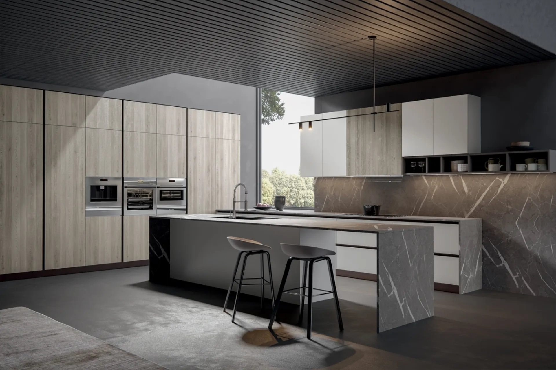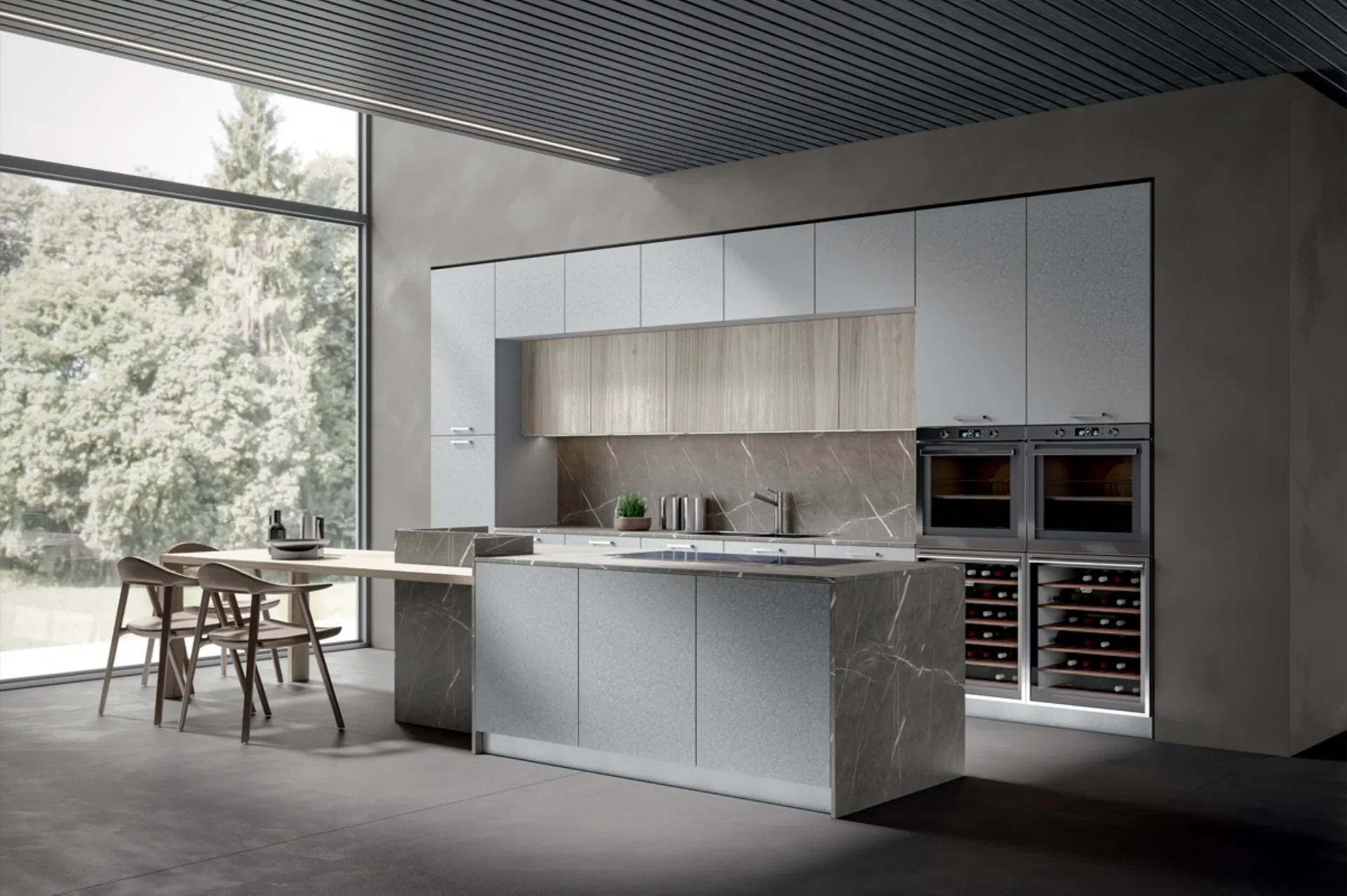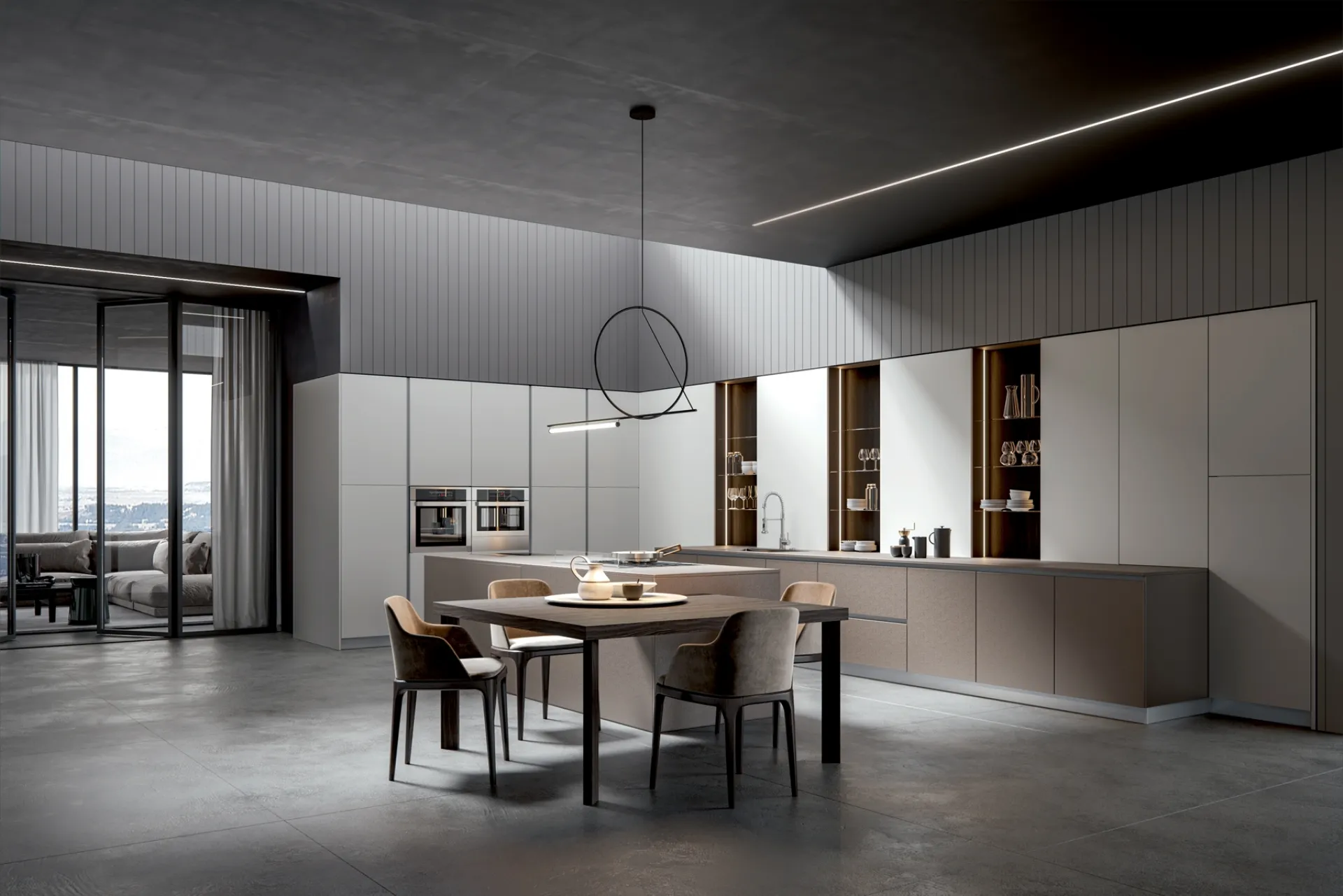 A rendere la Cucina Moderna Aura con isola di Home Cucine una tra le più belle soluzioni del marchio, oltre ai suoi bellissimi dettagli, è il materiale: è realizzata in melaminico per assicurare comfort e durata nel tempo. Quando scegli una cucina moderna devi dare priorità al modo in cui vivi i tuoi locali, per progettare al meglio la tua composizione d’arredo. Se vuoi una soluzione dalle linee essenziali, caratterizzata da un design più sobrio, ti raccomandiamo di orientare la scelta verso le Cucine Moderne del marchio Home Cucine.