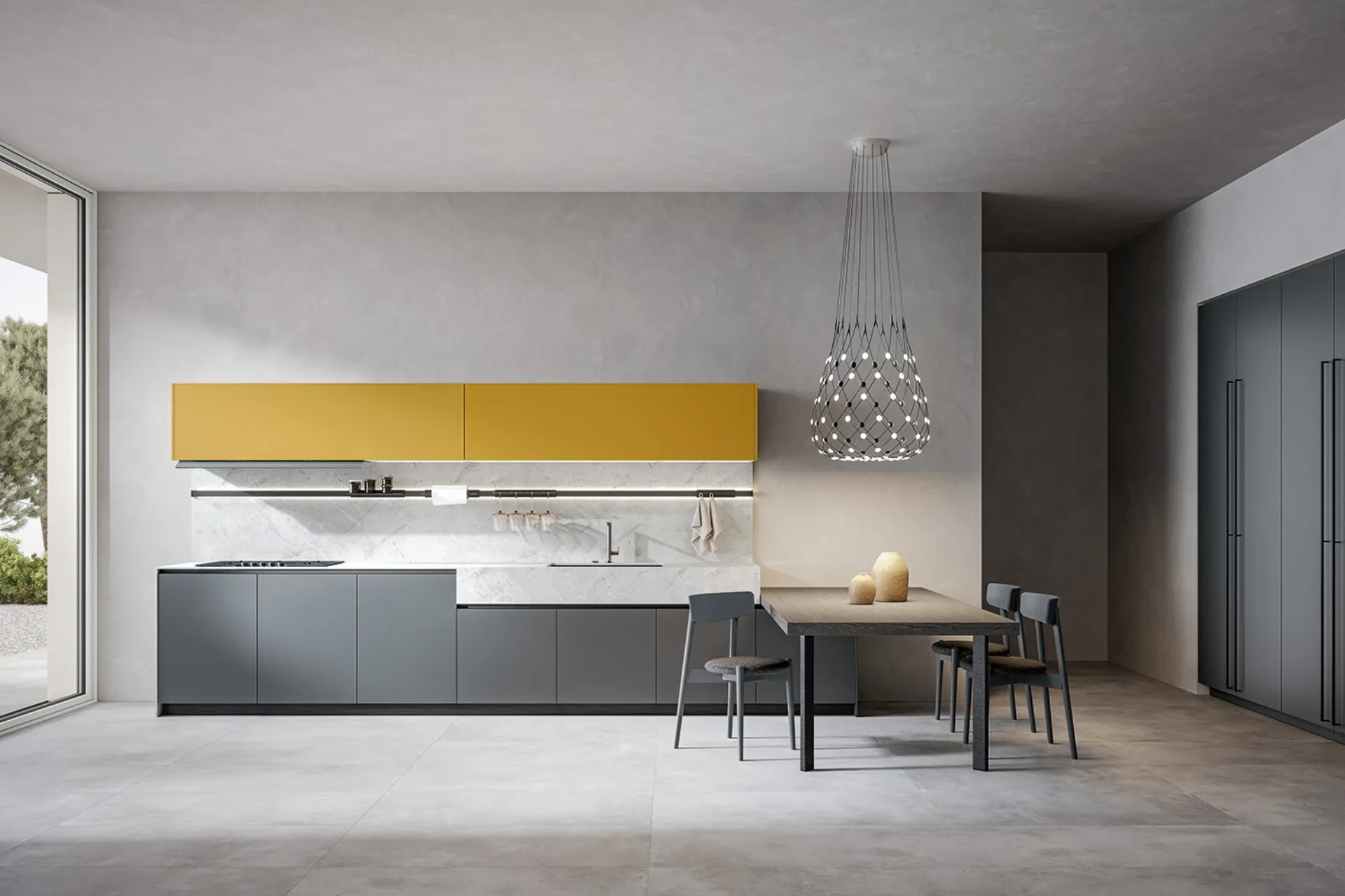 Questa soluzione ti lascerà a bocca aperta per merito della gamma praticamente infinita di materiali e elementi accessori sempre disponibili visitando il nostro negozio. Scopri un ricco catalogo di Cucine Moderne in linea delle migliori marche: abbiamo selezionato per te le più originali soluzioni Home Cucine, caratterizzate da forme decise e massima componibilità. Se cerchi una composizione in laccato opaco, ti raccomandiamo il modello presente in foto: materiali di qualità e finiture di tendenza sono assicurati.