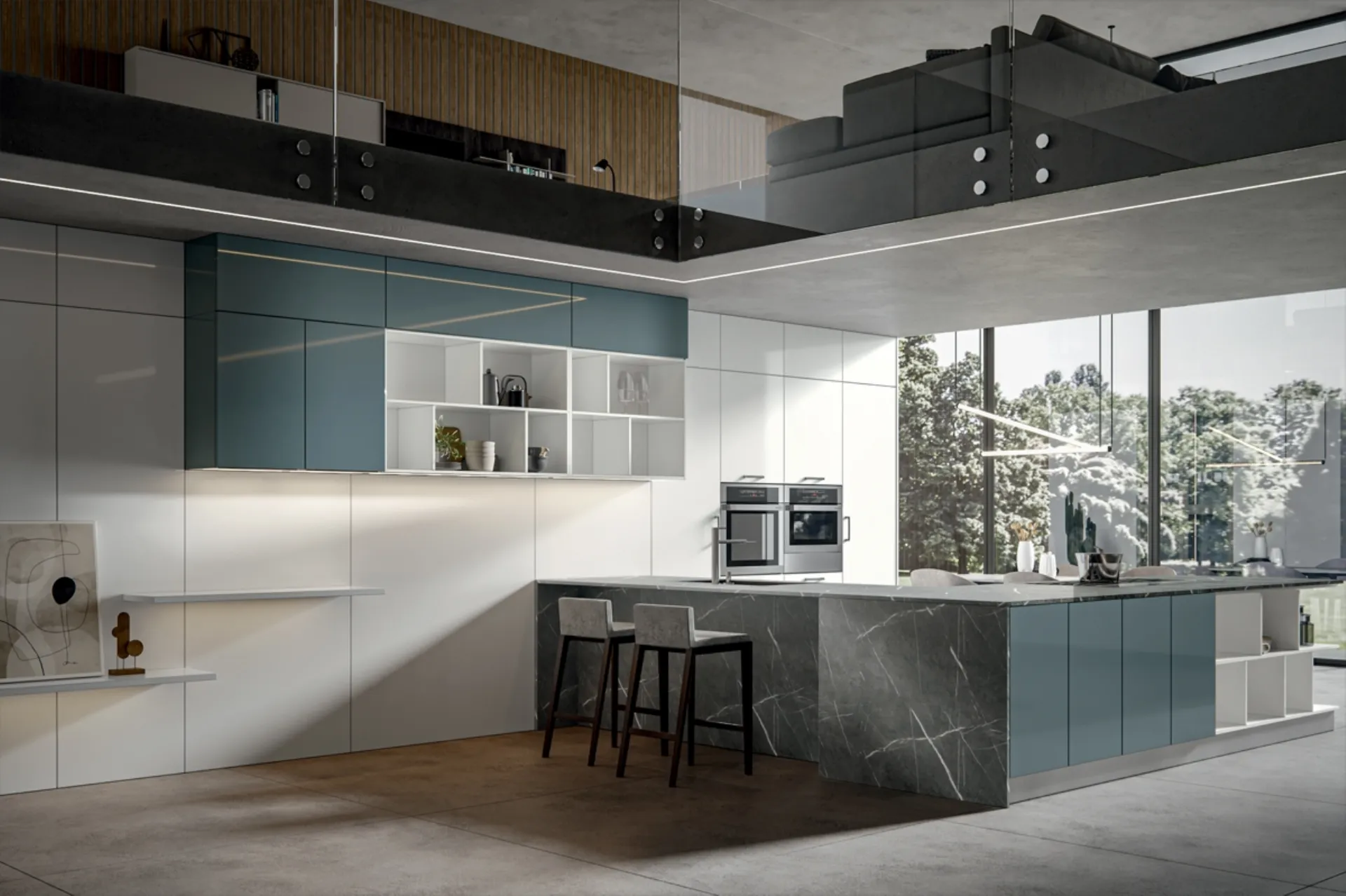 Home - Cucine - Cucine Moderne - Klee con penisola Navy e Seta